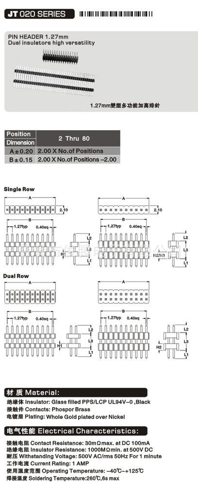NBJT/JT020 1.27mm双塑多功能加高排针系列
