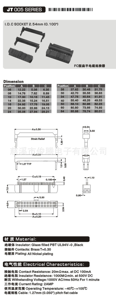 NBJT/JT005 2.54FC型扁平电缆连接器系列