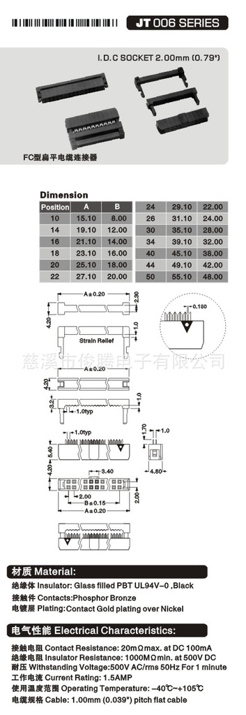 NBJT/JT006 2.0FC型扁平电缆连接器系列