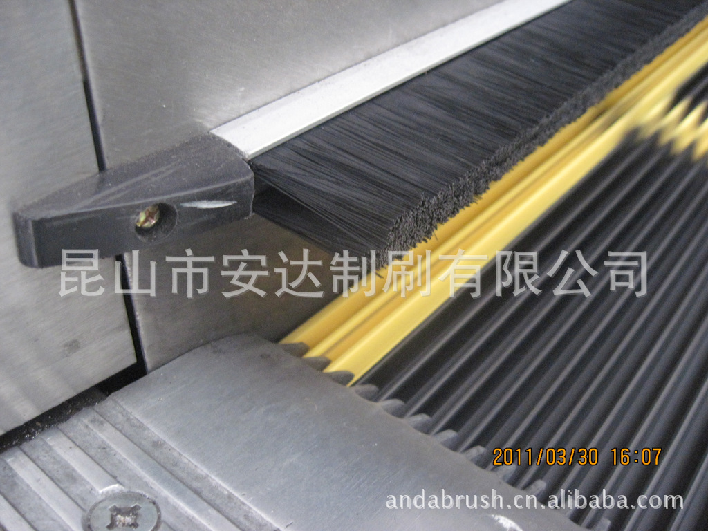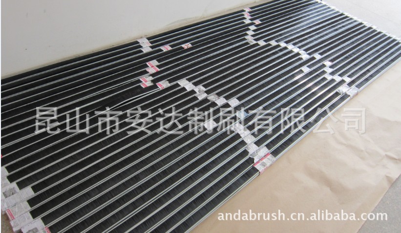 昆山市安达制刷有限公司引进先进设备,专业生产工业条形刷,可分为工业门毛刷、汽车门毛刷、屏蔽门毛刷、家居密封门刷,机械设备密封毛刷,防尘毛刷,登机桥、自动扶梯、人行道安全毛刷、裙板刷,机柜机箱毛刷,集装箱毛刷,输送线用毛刷,办公家具毛刷,风力发电机仓罩毛刷等,按需可为客户定制。