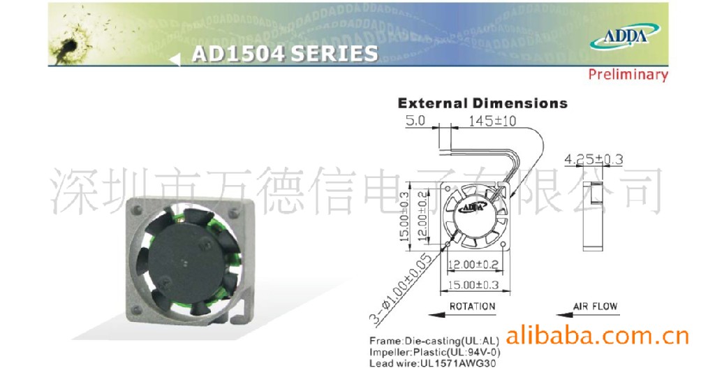 ADDA CORPORATION在电子散热处理方面一直居于领先地位。产品具有低噪音、低功耗、长寿命、大风量等特点。规格从15mm-250mm近千个品种。