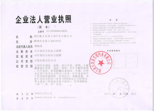 湖北航天双龙专用汽车有限公司隶属于中国航天汽车有限责任公司,是集研发、制造、销售“龙帝“品牌的石油化工、市政环卫、工程建设等九大系列520多个品种的专用车(改装车)企业,是湖北省创新型试点企业,各类专用车生产设备600多台套,年生产能力达6000余辆。本公司专业生产市政环卫系列(绿化喷洒车、洒水车、垃圾车、餐厨垃圾车、吸污(粪)车、联合疏通车、治沙植草喷播车);石油化工系列(加油车、运油车、液态食品运输车、化工液体运输车、运油半挂车);工程建设系列(混凝土搅拌运输车、散装水泥车、干混砂浆车、粉粒物料运输车、计量检衡车、下灰车、自卸汽车、沥青道路养护车、背罐车、移动式筒仓、随车起重运输车、随车吊、高空作业车一切专用汽车。