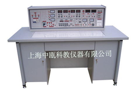 (三) 示教控制台:由示教实验操作桌、实验台、演示控制屏组成,能分别控制12台学生实验台的电源。演示屏立在实验台上,尺寸为160×70cm,用于讲解、演示。