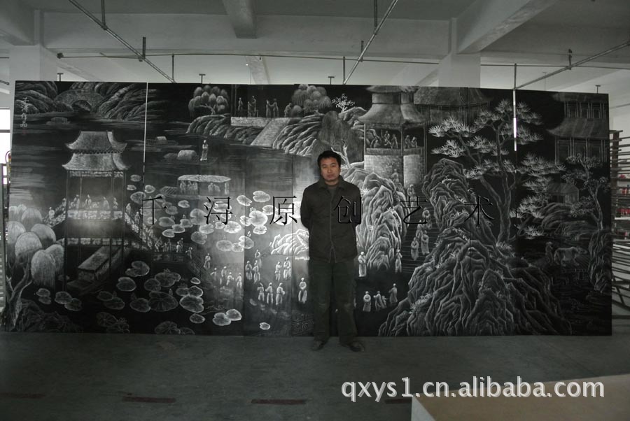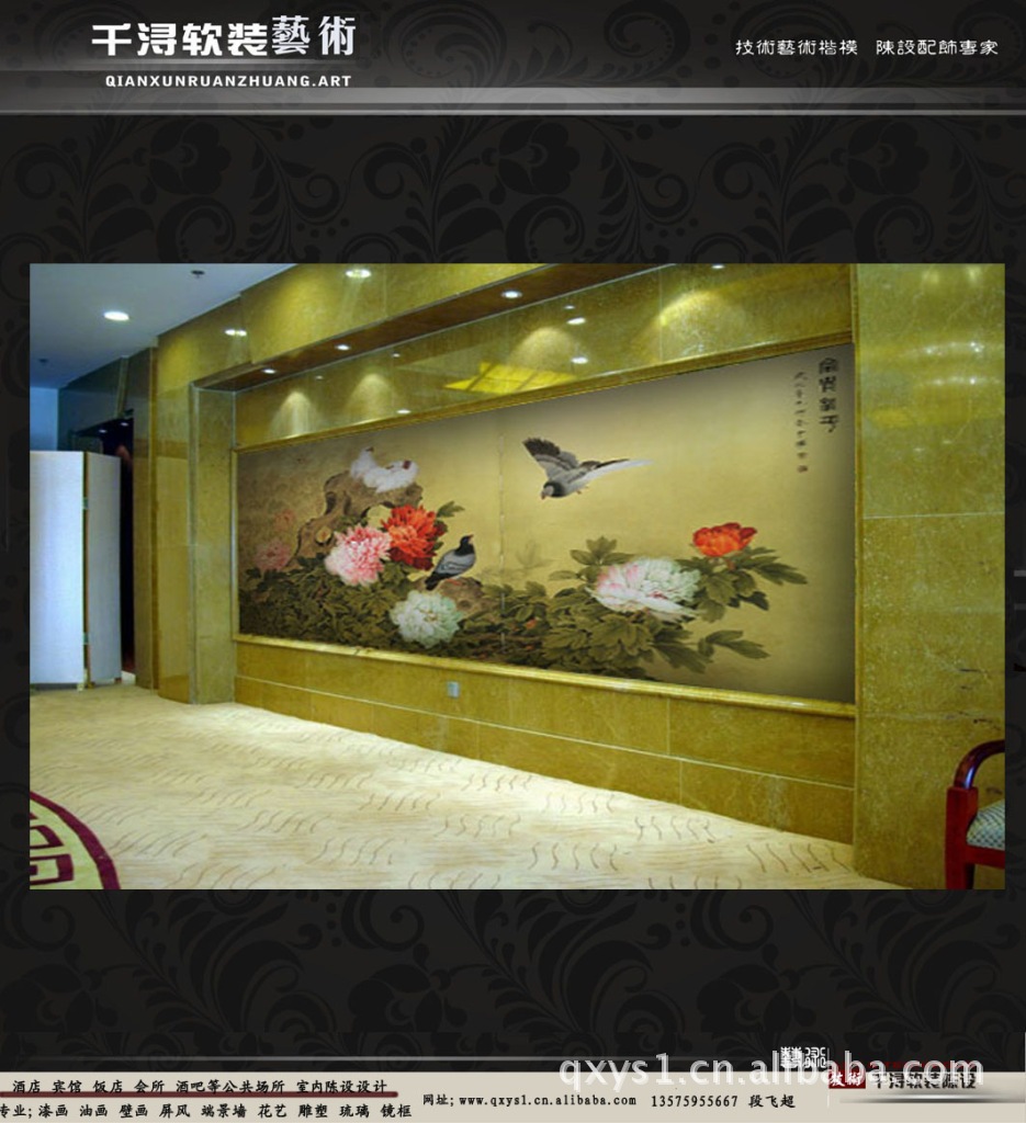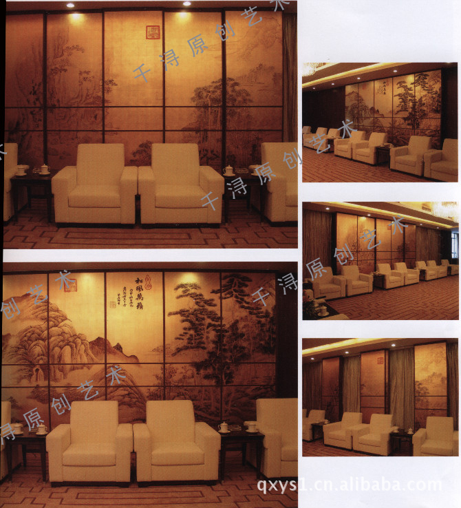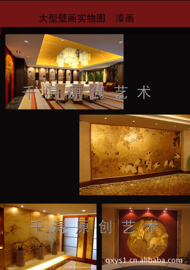 千浔原创艺术工作室成立于2003年,多年来是以精湛的工艺和顾客至上的理念来面向全世界客户的,是以漆艺和绘画为一体的设计工作室,作品以原创为主,从设计--开发--生产制作--展示销售一体式服务,我们作品主要分类;磨漆画漆艺渲染大型壁画金箔壁画精雕壁画皮画工笔国画摆件花艺贴金银箔工程等系列作品同时接受不同风格艺术设计和独特性制作,应用范围高档会所酒店装饰及酒店空间装饰样板房住宅休闲会所公共空间KTV等场所,都可以依照设计巧妙的应用,千浔原创艺术将于设计师和工程商紧密合作,为每一个工程,每一位客户,每一件作品量身制作,任何尺寸,任何应用,都将完美尽力完美呈现。我公司以‘顾客至上锐意进去’的理念,坚持以‘顾客至上’的原则,我们会以最真诚的心态与你完成你想要的‘大型会议室壁画高档家装高档商务会所KTV空间及星级酒店壁画’空间装饰的尊贵客人提供优质的服务!你的需要是我们不懈的追求!!!