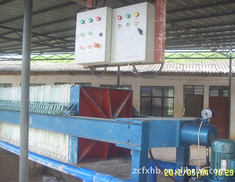 【设备特点】:FXBY系列板框式压滤机是一种间歇性固液分离设备,是由滤板,滤框排列构成滤室,在输送泵的压力作用下,将原料送进各滤室,通过过滤介质,将固体和液体分离。广泛应用于化工,染料,石油,陶瓷,制药,制糖,食品,淀粉,冶金及各行业的污水处理等。它具有分离效果好,适用范围广,操作简便,投资省等优点,特别是对粘细物料的分离,有着不同比拟的优越性。