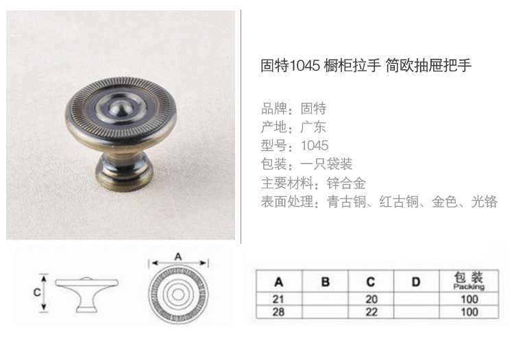 GUTE固特 1045简欧式抽屉把手家具拉手青古铜 青古铜