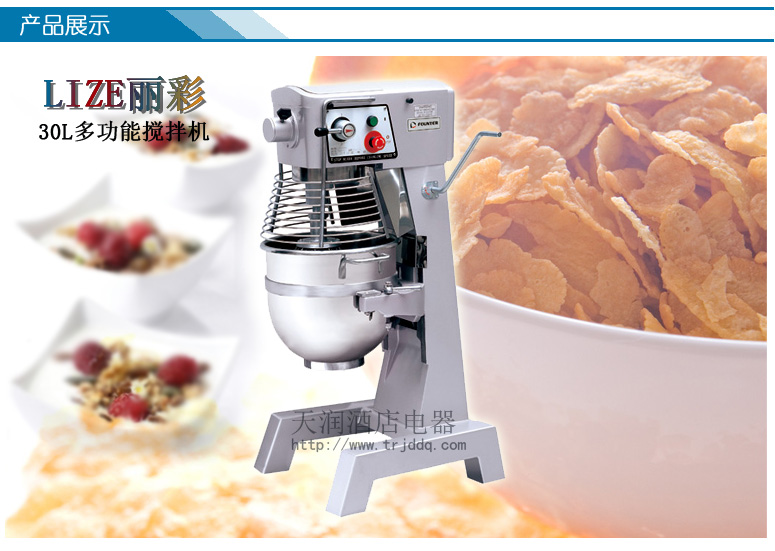LIZE丽彩食品搅拌机TRFV-VFM30B 多功能30L搅拌机型号:TRFV-VFM30B 额定电压:220V额定功率:1.5KW料桶容积:30L整机重量:208Kg 外形尺寸:597*611*1142mm