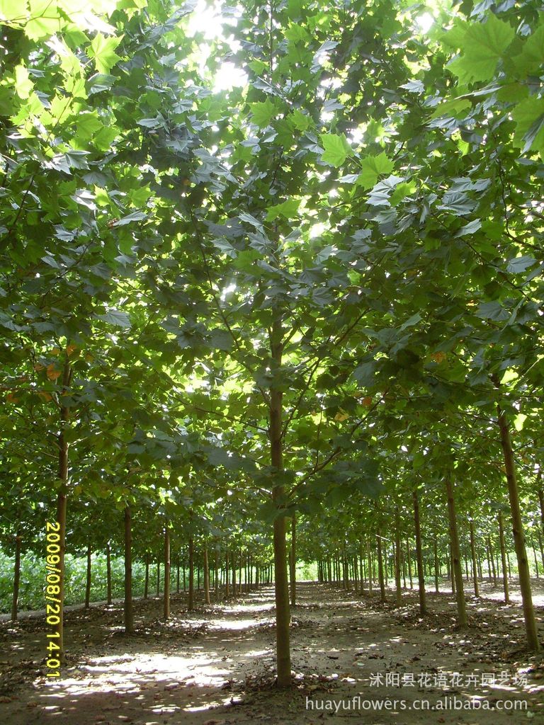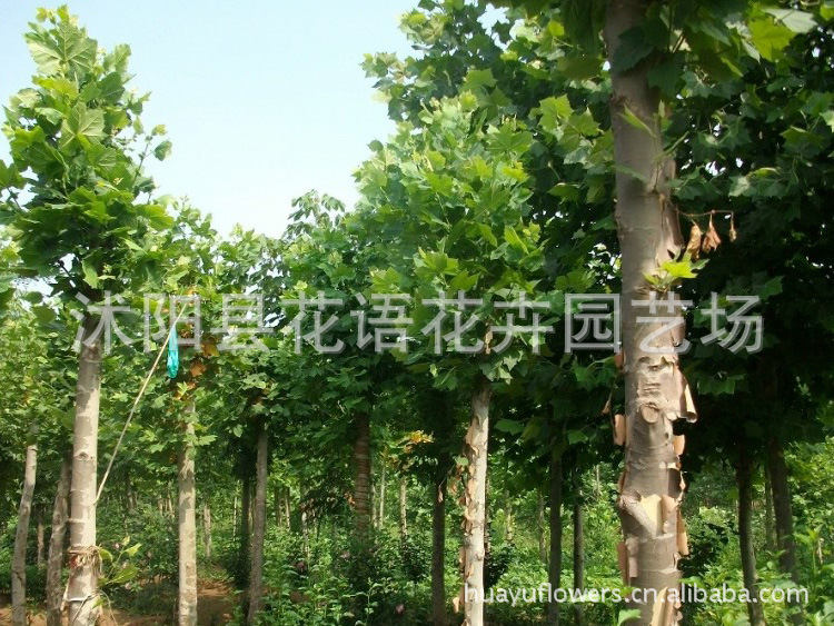 花语花卉常年批发法国梧桐苗,数量大, 价格低。订购热线:18118081999 联系人:周经理 法国梧桐简介法国梧桐落叶大乔木,高达30米,树皮薄片状脱落;嫩枝被黄褐色绒毛,老枝秃净,干后红褐色,有细小皮孔。叶大,轮廓阔卵形,宽9~18厘米,长8~16厘米,基部浅三角状心形,或近于平截,上部掌状5~7裂,稀为3裂,中央裂片深裂过半,长7~9厘米,宽4~6厘米,两侧裂片稍短。喜光,喜湿润温暖气候,较耐寒。欧亚大陆多地有栽培。树形雄伟端庄,叶大荫脓,干皮光滑,适应性强,各地广为栽培,为优良是世界著名的优良庭荫树和行道树。适应性强,又耐修剪整形,是优良的行道树种,广泛应用于城市绿化,在园林中孤植于草坪或旷地,列植于甬道两旁,尤为雄伟壮观,又因其对多种有毒气体抗性较强,并能吸收有害气体,作为街坊、厂矿绿化颇为合适,果可入药 。庭园树和行道树。木材可制作家具