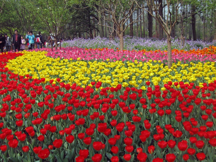 郁金香,属于百合科郁金香属的草本植物,是土耳其、哈萨克斯坦、荷兰的国花。,中药名称:郁金香《本草拾遗》;郁金香《太平御览》;红蓝花、紫述香《纲目》。花叶3-5枚,条状披针形至卵状披针状,花单朵顶生,大型而艳丽,花被片红色或杂有白色和黄色,有时为白色或黄色,长5-7厘米,宽2-4厘米,6枚雄蕊等长,花丝无毛,无花柱,柱头增大呈鸡冠状,花期4-5月,它的确切起源已难于考证。[1] 但在500多年前因中亚地区的人所戴的头巾与郁金香花形相似,其原名Tulipa就是土耳其语“头巾”之意。故有的专家认为它的原产地大概是在土耳其和地中海一带。至1863年传至荷兰。4年5月1日,锦州世博园重新开园,比2013年增加种植了400万株郁金香花。锦州世博园栽植郁金香超过44000平方米,包括荷兰角、贝隆夫人、舍利、橙色皇帝、美人、范依克、粉色浪漫、黄色激情等100多个品种。据了解,郁金花花期预计在5月1日至5月25日左右