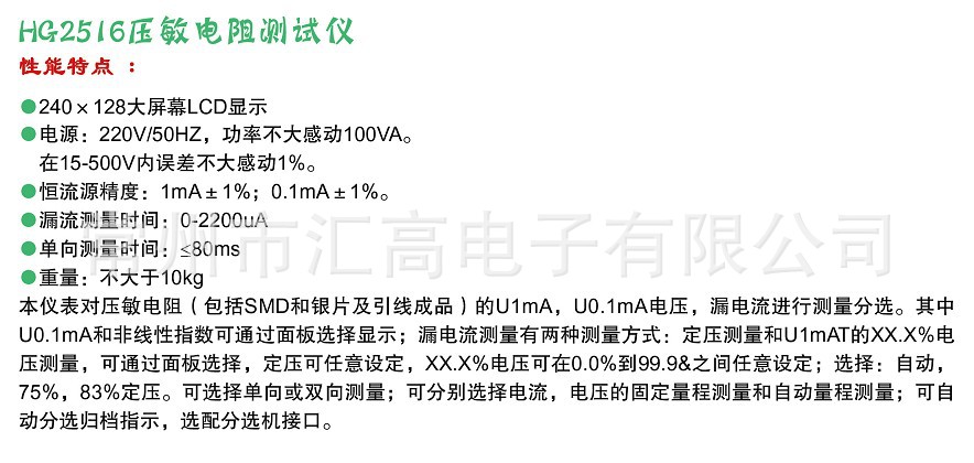恒流精度:1mA±1%;0.1mA±1%,漏电流测量范围:0---2200uA,单向测试时间:≤100mS,在15-500V内误差不大于1%。
