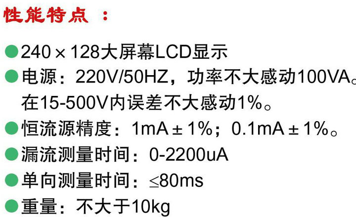 漏电流测量: 在设定电压或U1mA*百分数下测量漏电流
