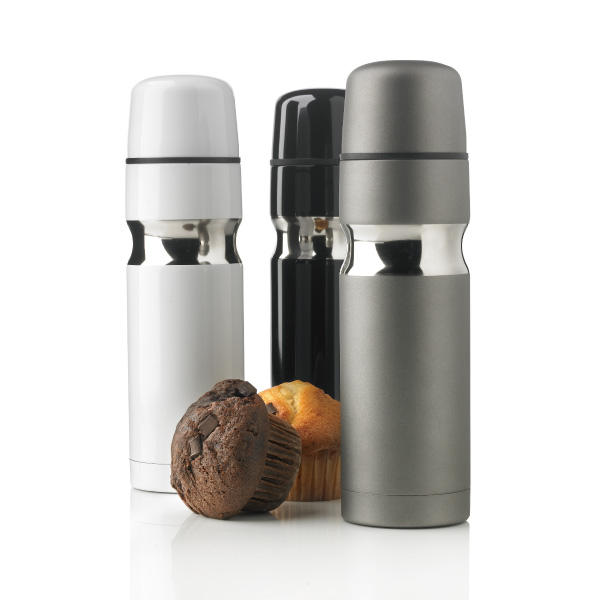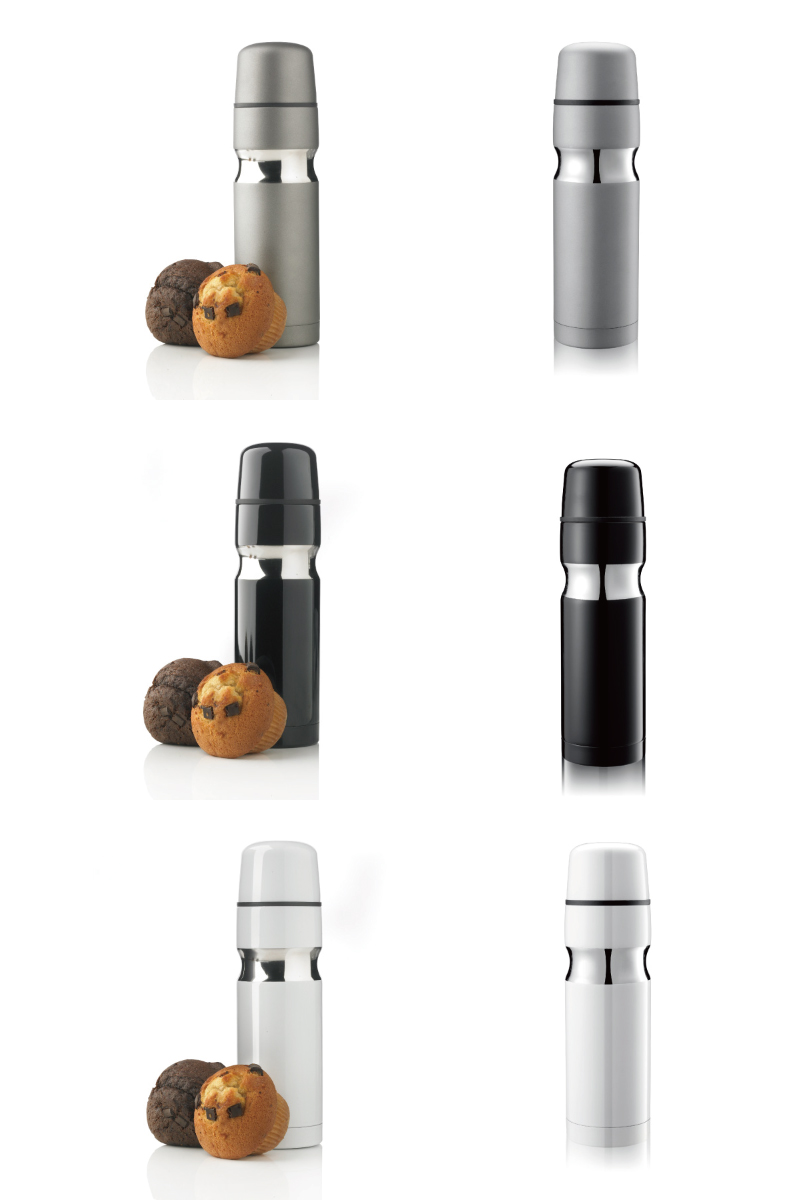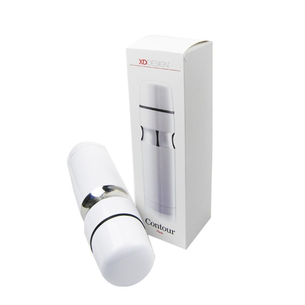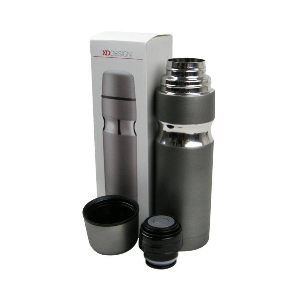 XDDESIGN专利设计,500毫升容量,双层不锈钢密封保温,顶部为自动关闭式开口,顶部含一个不锈钢杯子。