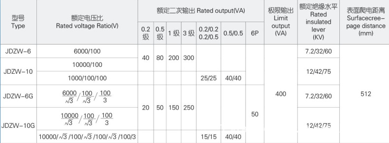 -60Hz,额定电压为10kv及以下电力系统作电压测量、电能计量用。