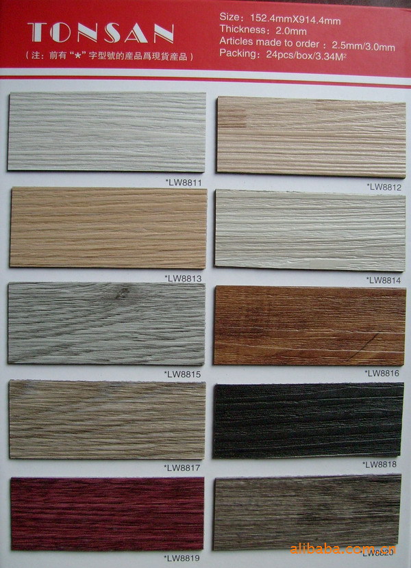 1. “统笙建材”系列PVC石塑艺术地砖简介:七个系列(福乐、御玺、龙之彩、高登福卷材、福乐防静电系列)。色彩多种多样、采用进口材料经(压延或热压方法)精制而成。