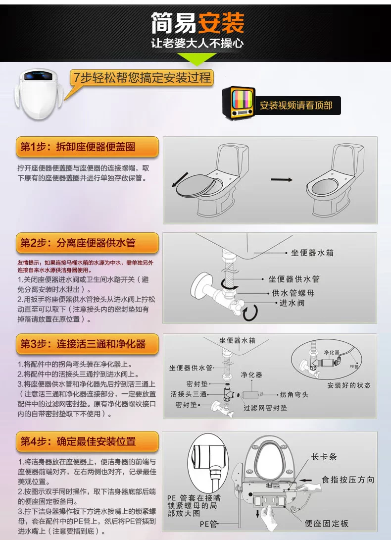 特价 七洗洁身器QX-008型智能冲洗便座 可装圆弧马桶 包邮