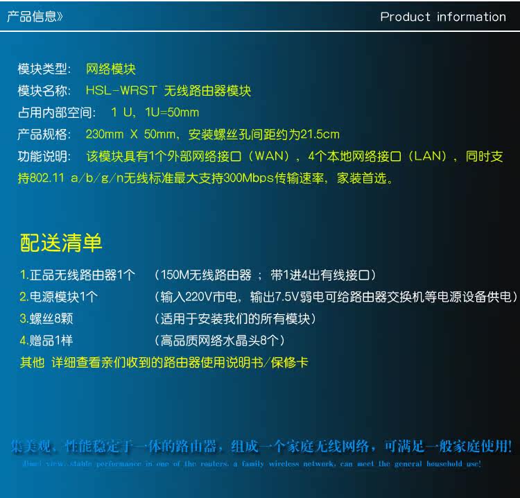 150M无线路由器模块 穿墙WIFI含电源送接头 弱电箱/多媒体箱专用