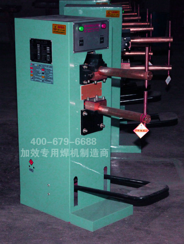在焊接时绝不能将手等放入电极之间,电极加压大至数千牛顿,会造成重伤。