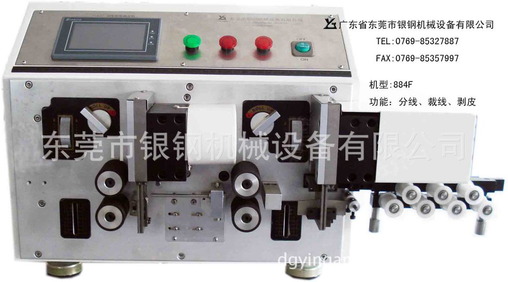该机型是新一代电脑全自动分线、裁线、剥线一体完成的机器,本机采用最先进的PLC控制系统,全中文触摸屏显示,无极分线、分线的长短、剥头的长短均可在显示屏上输入数字调节省时,高效,方便,帮故障率低,大大提高了并排线有分线要求的线束加工效率。