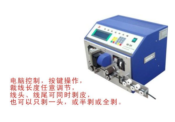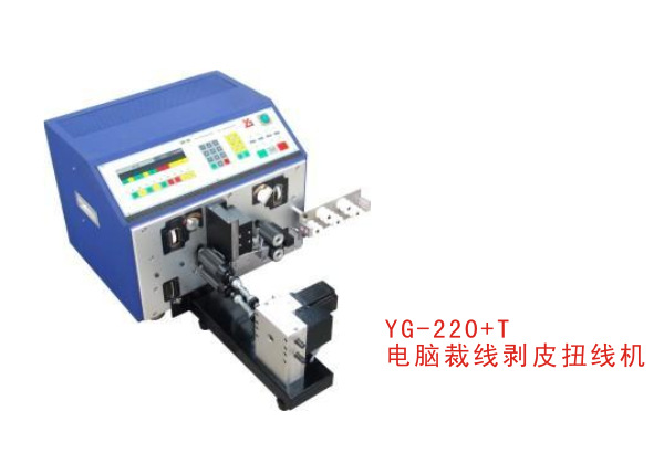 YG-220+T电脑裁线剥皮扭线机 功能:适用于裁剥各种2平方以内的电线,一次加工两条,也可一次加工一条。电脑控制,按键操作,裁线长度任意调节,线头、线尾可同时剥皮,也可以只剥一头,或半剥或全剥。裁线,剥皮,扭线同时完成,提高工作效率和质量。也可以设定不扭线、或单边扭线。操作灵活方便。同台湾机一模一样。 技术参数: 型 式: | YG-220 全自动电脑裁线剥皮机 | YG-220+T 全自动电脑裁线剥皮扭线机 | 剥皮长度: | 前端0.1mm~可设定值999mm(视线材而定) | 后端0.1mm~可设定值999mm(视线材而定) | 扭线长度: | 前端0.1mm~可设定值999mm(视线材而定) | 后端0.1mm~可设定值999mm(视线材而定) | 尺寸重量: | YG-220 450×450×360 MM36kg(NET) | YG-220T 450×720×360 MM39kg(NET) | 适用线径: | AWG#16~AWG#32(AWG#14单线) | 切断误差: | 可修正 | 切断长度: | 0.1mm~7800mm | 电源电压: | AV110V/220V(50/60HZ) | 消耗电力: | 停止时20W~最大值200W |
