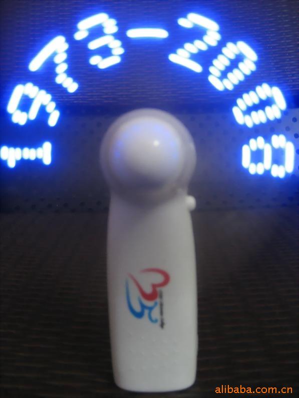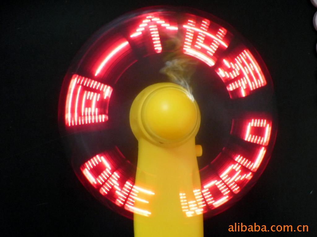 此风扇由3颗7#电池作为电源,风扇透明叶面内置有7颗LED, 旋转时会闪出如“I LOVE YOU ”、“HAPPY NEW YEAR”、“WELCOME”英文短句,作为促销品,节庆日用品/赠品非常合适。 专门做客人指定的LOGO!!!