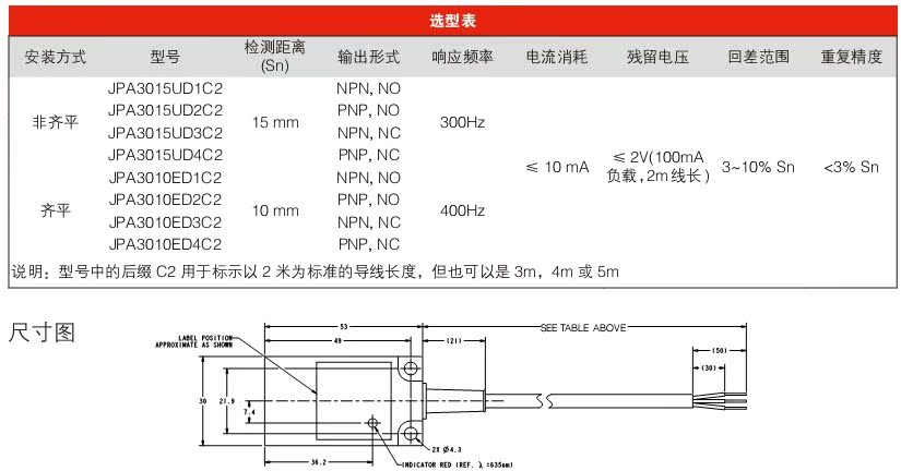 JPA3015UD1C 霍尼韦尔接近开关