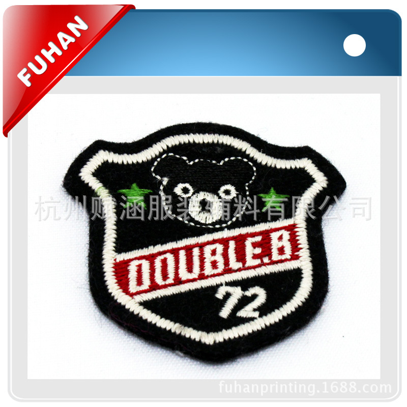 我司绣花标用到的布料很广泛,可以在包括毛毡布、斜纹布、皮革等几乎所有布料上绣,而且用到的线也比较广泛,不仅包括绣花线,也有银丝线、金丝线(又称银葱线、金葱线)等特殊线。所以,我司可以为您定做几乎所有材质和花型的绣花标,如:平绣、毛巾绣、珠片绣,皮革绣等。
