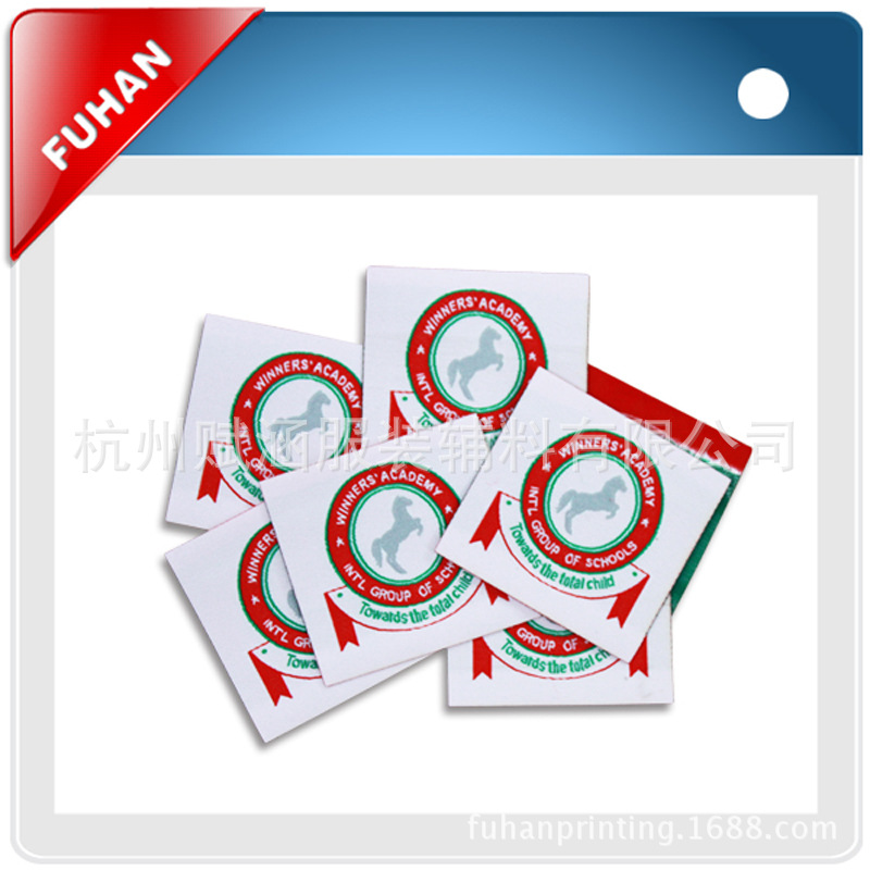 4.木梭机勾边唛。它是把商标按所需要的宽度一次性织出来,避免了切边织唛因热切出来的边缘刺的缺点,而且手感柔。但是多只能是四色,产量低。也有平面和缎面之分,缎面的纸很难表达,一般是用烫色或是染色来解决此问题。高档服饰用得多,例:西服,时装类。