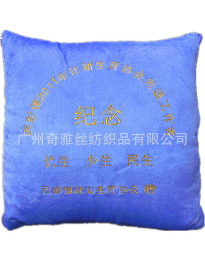 1、可设计生产不规则或卡通造型的抱枕 抱枕被2、可提供热转印图像的设计方案及抱枕 抱枕被的成品制作3、可提供绣花设计及抱枕 抱枕被的制作。 抱枕被适合:企业单位发放员工福利礼品,产品广告促销品,广告赠品,朋友赠品,集团庆典纪念实用礼品,旅游用品。多功能抱枕被,该产品利用巧妙的结构,将靠垫、睡眠被及汽车坐垫、郊游毯结合为一体,多功能使用并且新颖实用。合上就是一个美观的靠垫,打开变成一条柔软的被子或者非常方便的郊游毯。“多功能抱枕被”适合现代都市节奏的生活方式,体现了至上关怀及贴心舒适。适用于办公室、外出旅游、家居休息等任何场合,是大家的可心伴侣。还可加上各种LOGO。量大价格可具体商谈!