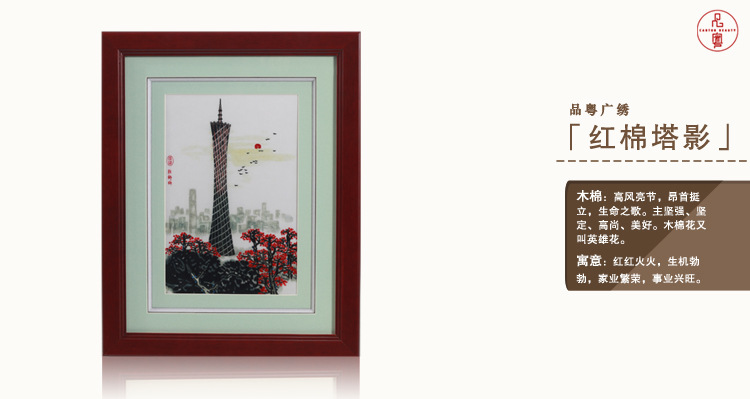木棉花又叫英雄花,高风亮节,昂首挺立,寓意红红火火,生机勃勃,家业繁荣,事业兴旺。广州塔,拔地擎天,高耸入云,屹立南粤大地,代表时代新高度,寓意事业步步高升,再攀高峰。