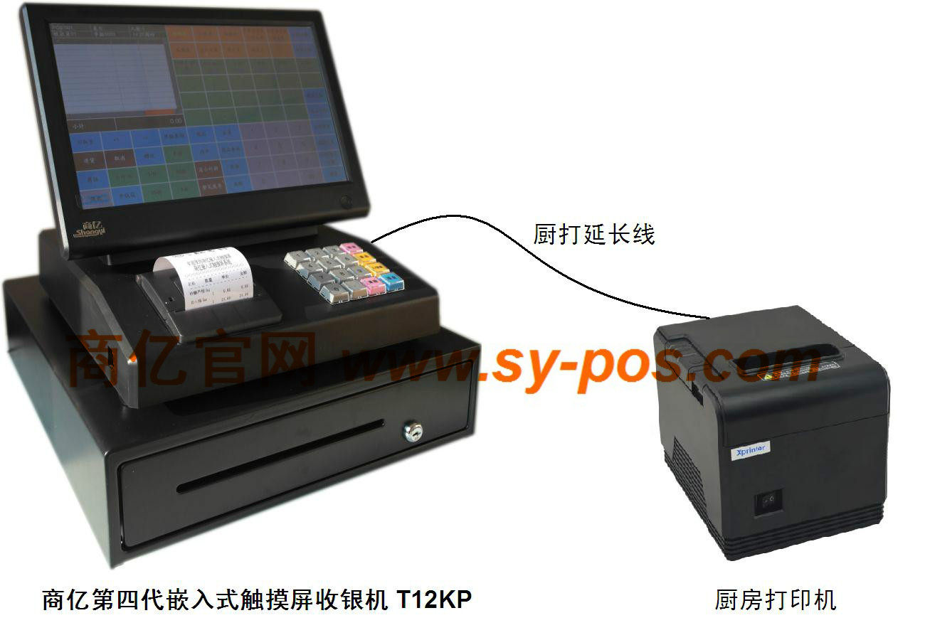 12.1寸嵌入式触摸屏收款机【防伪标】标配含四行液晶中文客显+内置58mm高速票据打印机+3档钱箱)+保护膜