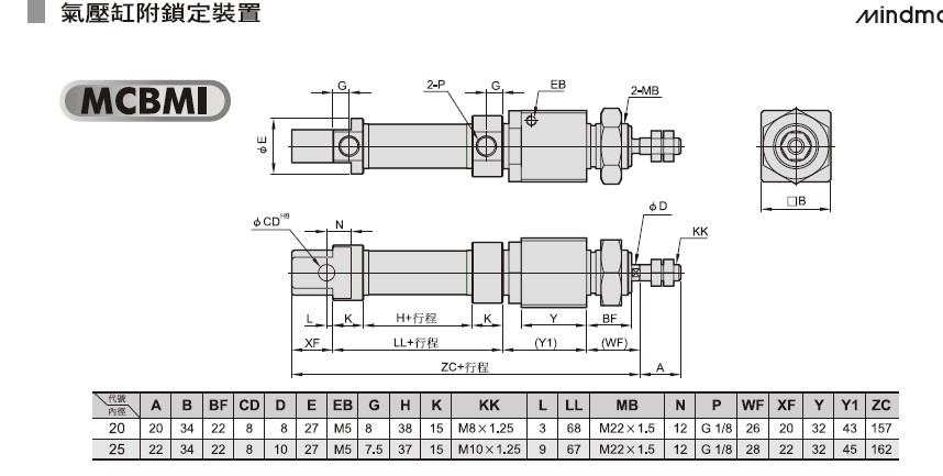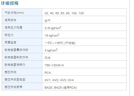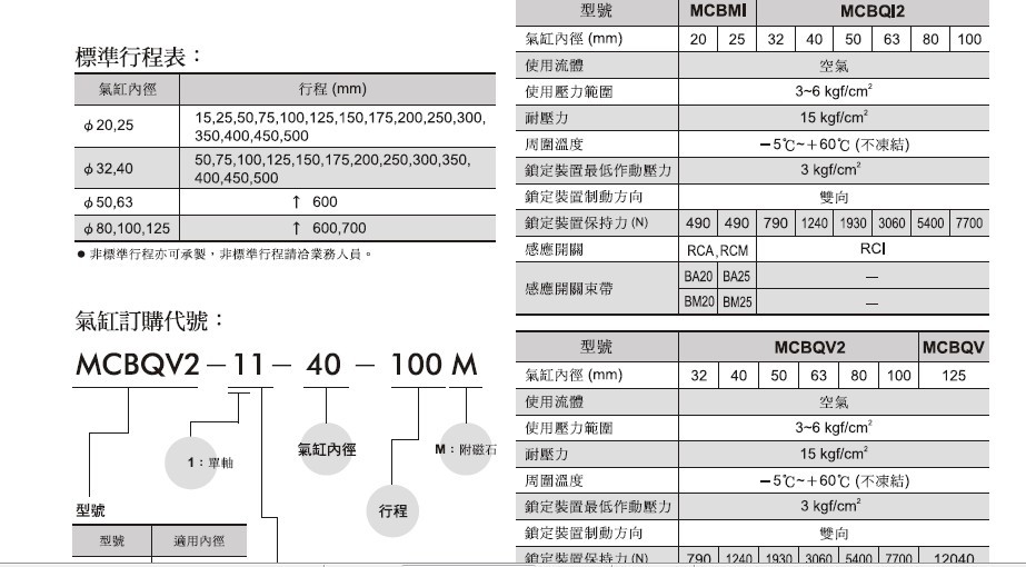 金器MCBQV锁定型气缸:多样规格:运用在行程范围内状态的保持,气缸内径φ32~125 七种规格。制动功能:双向均有制动功能,可搭配感应器达到特定位置之保持。免给油,採用含油合金,特殊轴承衬套,使活塞桿无需给油。高品质;耐久佳: 气压缸管採用铝合金材质,经过氧化铝膜处理,更具耐磨,耐蚀性。ISO标准规格:根据国际标准ISO-VDMA规格制作,大多数零件可互相替换。多样化支架,多种固定式及非固定式支架,供客户选择。