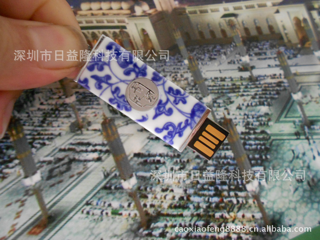 深圳市日益隆科技专业生产青花瓷U盘、陶瓷U盘(自有模具,低价)水晶镶钻U盘、卡片U盘(深圳生产厂家,自有彩印机)适合出口,可设计可开模,根据客人指定款式,量大可免模具费用。 款式繁多,欢迎咨询或订购!1)产品体积小巧,使用简便;迷你设计,时尚质感2)存储容量大、低价格。可提供多种容量可选:32M,64M,128M, 256M, 512M,1GB, 2GB 4GB 8GB 16GB 32GB3)安全可靠性好,采用A级原装芯片Flash 电子存储介质,可擦写100万次以上,