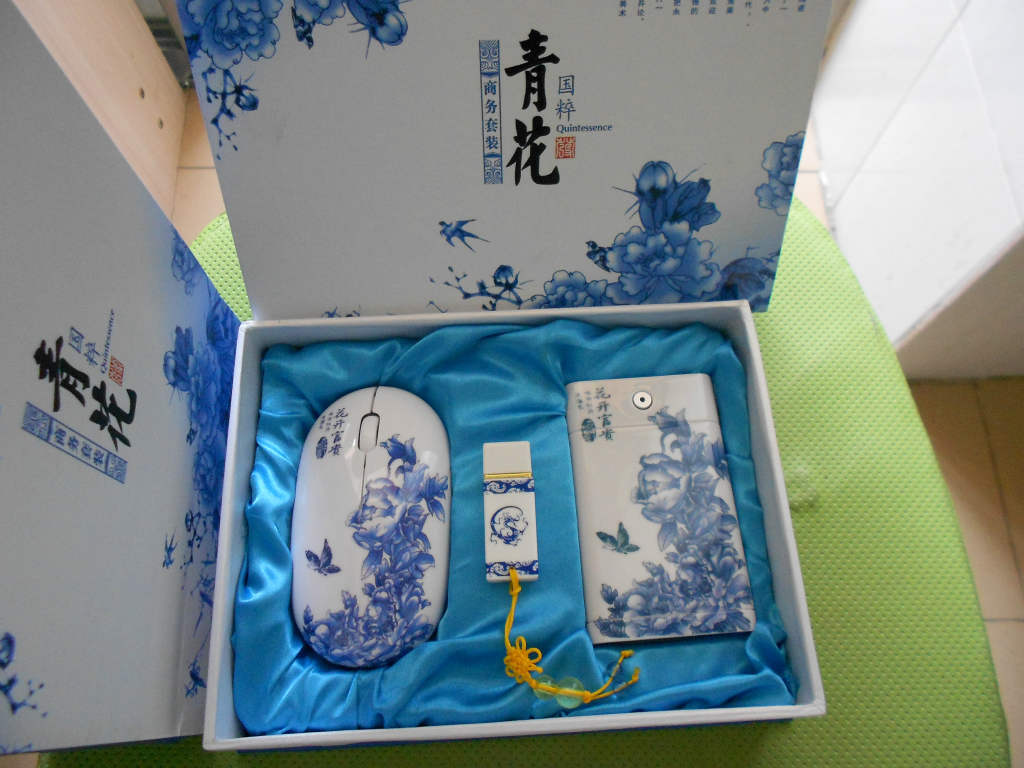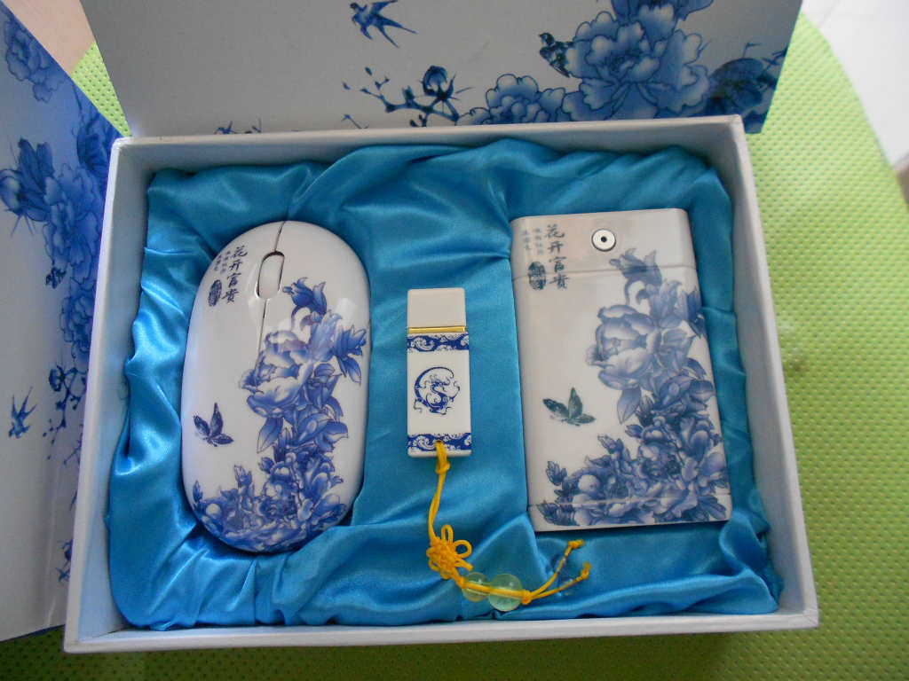 供应青花瓷商务套装 青花无线鼠标配U盘配名片夹配笔 低价出货