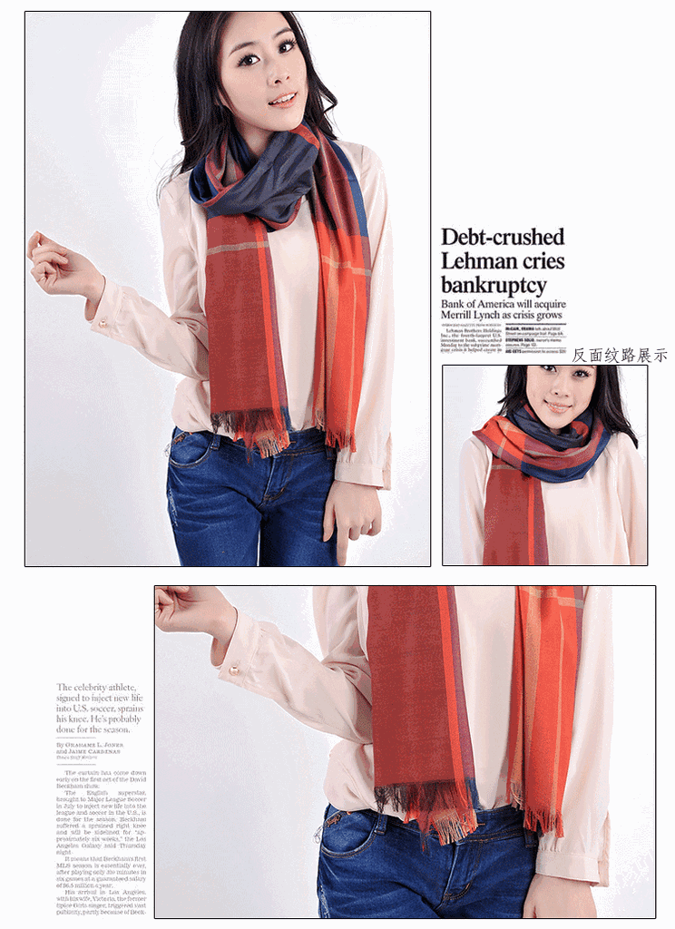 厂家直销 2013秋冬新款 男女通用双面绒格子 围巾批发