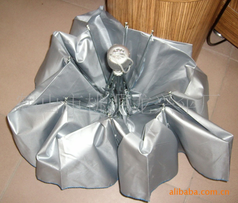 伞的折叠:用手指把每个伞瓣的褶皱处理出来,按照一个方向理顺,再按照伞扣的方向折叠起来。一定要把伞理顺后再收起来,否则很难看,而且会变邹。