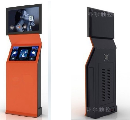 一、科尔双屏查询机配置参数: 1双屏机柜:采用一级冷轧钢板,汽车烤漆,防磁,防锈,防静电,流线性设计,专业数控机床生产,做工精细,内部结构设计合理,符合人体工程学。可定制功能,颜色。内置功放喇叭,风扇,电源插座,带电源口,网络接口,并预留走线口,机身可按用户要求丝印公司LOGO,宣传语等。 2液晶屏:上屏采用22寸全新工业级三星液晶屏,对比度5000:1,亮度:500md 反应时间<4MS,包无亮点.暗点. 下屏采用19寸全新工业级LG液晶屏,对比度3000:1亮度450md,反应时间<4MS,包无亮点,暗点. 3触摸屏:采用红外/声波触摸屏,具有防尘,防暴,防水,防刮的特性,使用寿命长,精准度高,透光度>98%,反应速度快,分辨率4096*4096,单点使有寿命>6000万次. 4主机:内置主机挂板,可直接固定主机配件,散热性好.可选择工控主机或PC主机 5物理尺寸:180CM*55CM*40CM