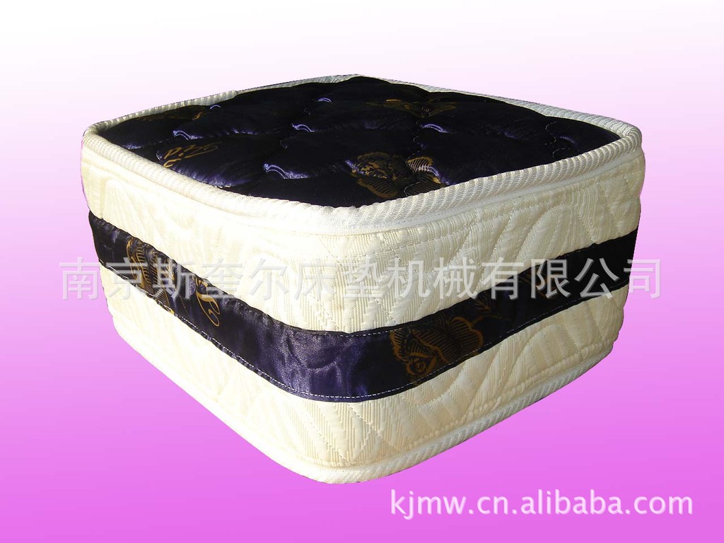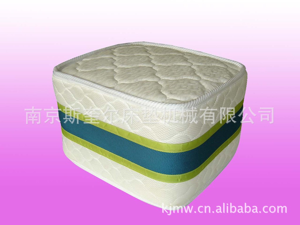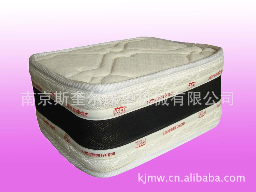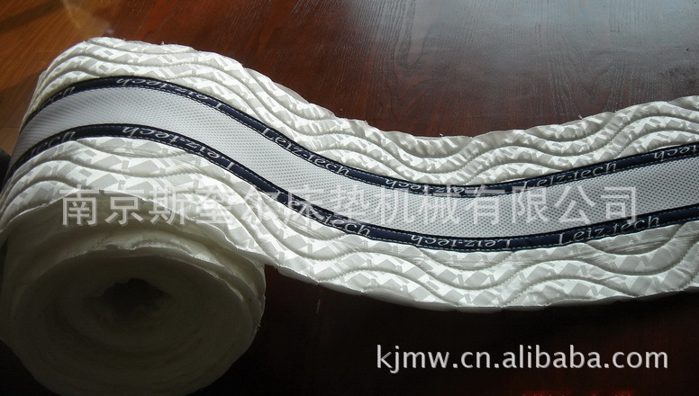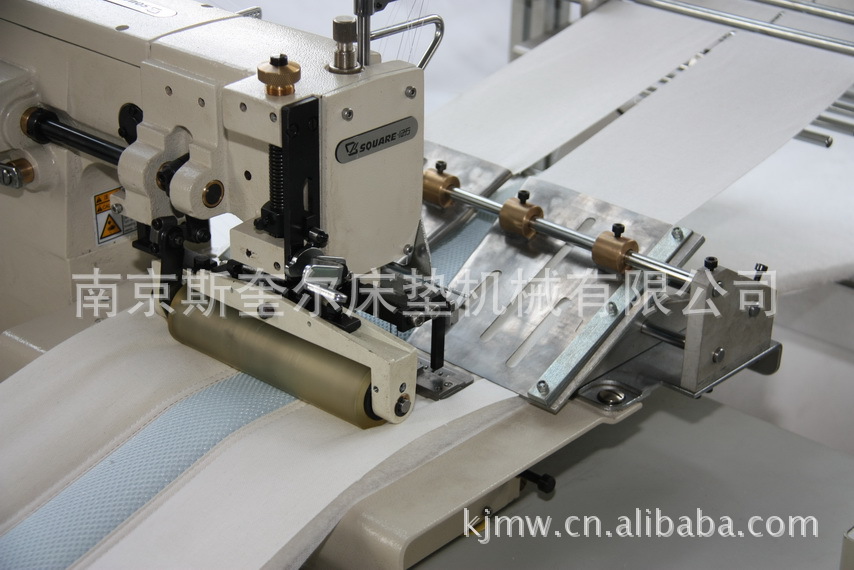 该机可以同时把两条带有商标的编织带缝合于床垫围边料上,编织带位置可以适当调整,该机具有断线保护、自动收卷等功能,是高档床垫生产的理想配套设备。