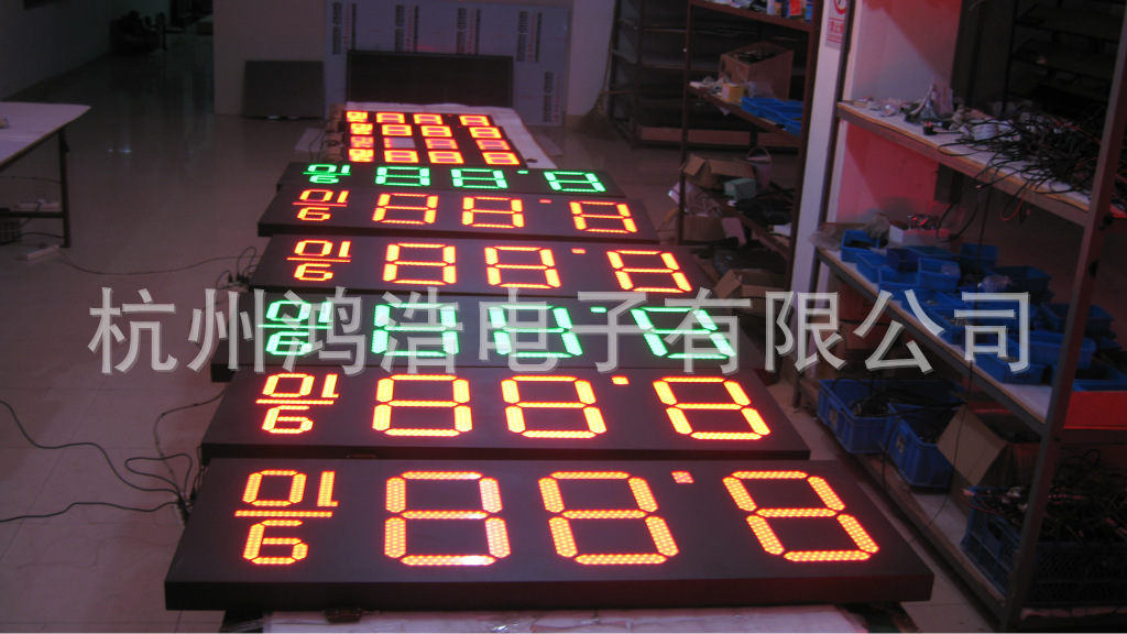 Parameters | Use of the environment:outdoor brightness: high brightness and can be adjusted Height of characte: 16INCH 4digits Display color: Red Display Format: 8.88 9/10 |