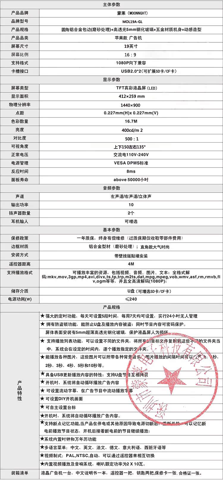 广告机本属于定制行产品,功能都是可以根据客户要求扩展的,功能扩展价格也会相应增加哦!店铺的价格为单机版只带U盘接口,以下扩展功能价格都是在单机版价格基础上增加。