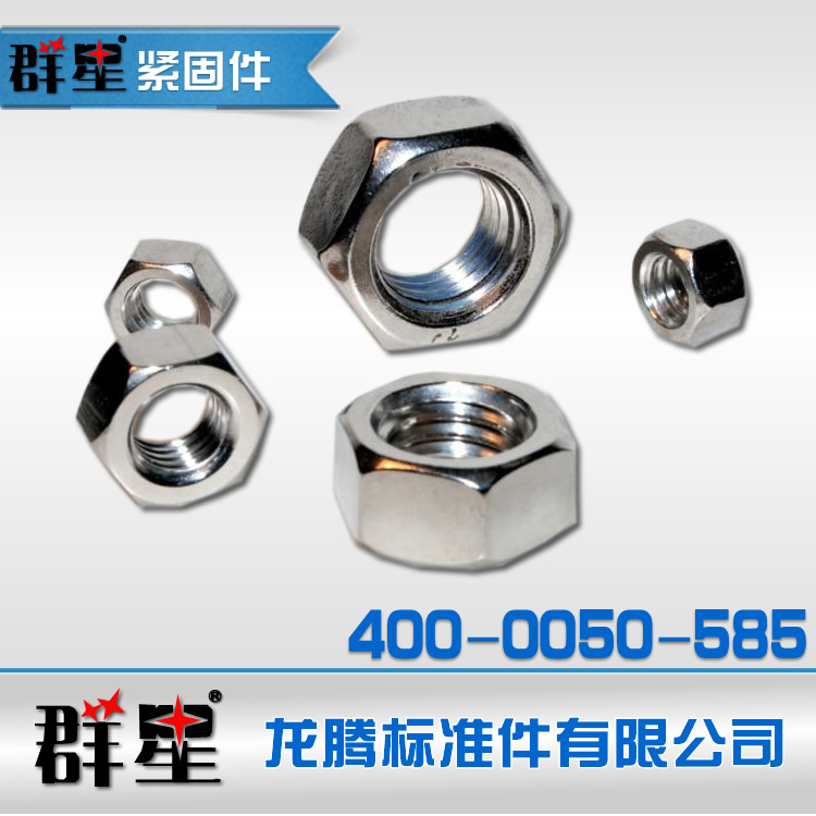 一条龙生产各种规格,型号,材质的六角螺母 HEX NUTS 六角螺栓 Hex bolt 牙条Full thread bolt薄螺母 THIN NUTS 加厚螺母 THICKEN NUTS 开槽螺母 SLOTTED NUTS 方螺母 SQUARE NUTS 盖形螺母 CAP NUTS 法兰面螺母 FLANGE NUTS 圆螺母 ROUND NUTS 焊接螺母 WELD NUTS 自锁螺母 SELF-LOCKING NUTS 高强度螺母 HIGH-STRENGTH NUTS 其它螺母 OTHER 本厂也可根据用户要求设计、制造,以满足不同的螺纹规格及锁紧行程。可生产[公制,英制,美制,德制],并可按客户图纸加工。