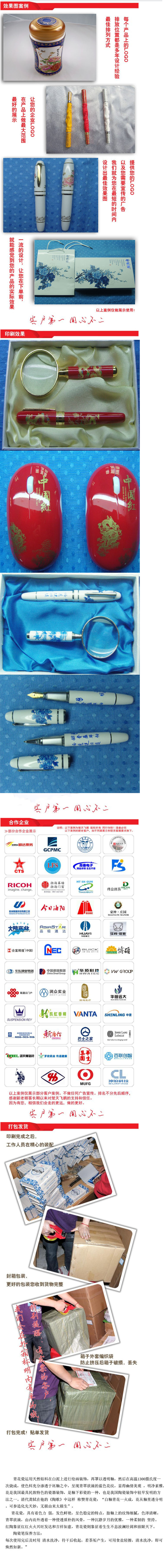 南昌市红艺文具礼品厂是一家致力于商务文化用品的研发、生产与销售的实体企业。公司为了推广“中国风”艺术的精华,着力研发、生产、销售以“中国风”艺术为主题的书写工具--中高档金属笔,积极倡导“生活艺术化,艺术化生活”。经过多年发展,我公司研制、生产的书写工具主要有青花瓷笔、青花笔、中国红瓷笔、中国红笔、帝王黄瓷笔、帝王黄笔及各种商务礼品套装。