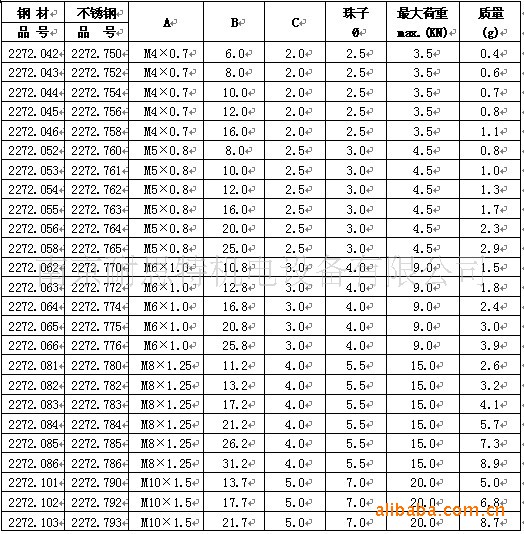 不锈钢型号:本体/珠子材质:不锈钢 本体硬度:HRC33-39 珠子硬度:HRC55