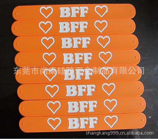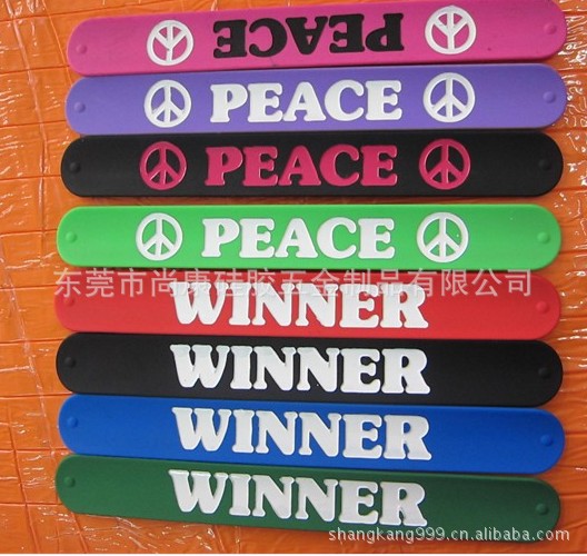 手环采用100%固体硅橡胶经油压机压制而成;手腕带本身具有一定的张力及柔软性,因而容易变形并立即恢复;硅胶手环具备耐磨损,耐高温,不变形、无毒、无味、对人体无副作用等特点和柔软、不开裂、使用寿命长、不刺激皮肤等优点,硅胶手环是真正的绿色环保饰品, 硅胶能量手环具有促进血液循环,抗疲劳,抗辐射,抗静电,硅胶种的负离子使人的身体的电流电压趋于平衡,避免了一些不必要的麻烦;具有美观大方的个性,能量平衡,在体育运动和静态的情境下,凸显能量平衡的作用! 硅胶手环最早流行于美国,世界上第一款硅胶手环是黄色"LIVESTRONG",所有戴此手环的人们共同的目的是抵抗疾病癌症,让生命更强壮! 此后,由于硅胶手环具有环保,无毒无味,并且弹性好,易佩带等优点,逐渐发展成为一种流行的饰品,深受青年朋友的喜爱,如今这种流行已经蔓延到全世界。本产品可以分为多种工艺加工如:加入荧光粉,凸字描色,凸字4色印刷,平面全身4色印刷等,