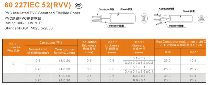 煊华电源线中国标准聚氯乙烯绝缘软线