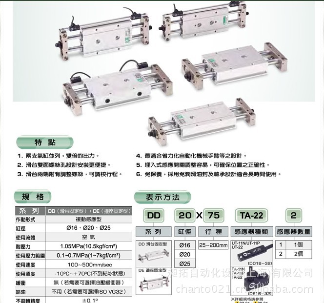 供应台湾chanto 高质量 长拓精制DD滑台气缸