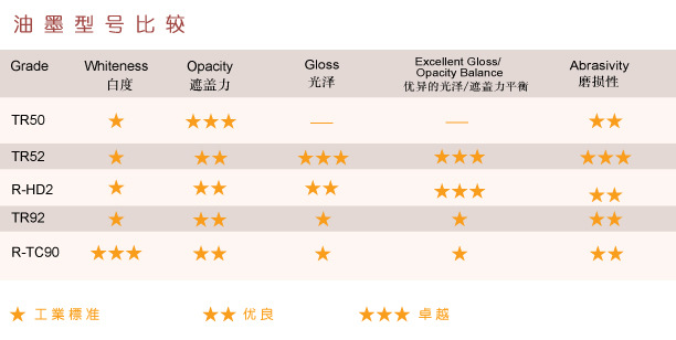 TIOXIDE®亨斯曼TR52钛白粉颜料为反面印刷提供良好的遮盖效果,并且让油墨配方设计师仅使用同一品级来满足高光泽表面和反面印刷。