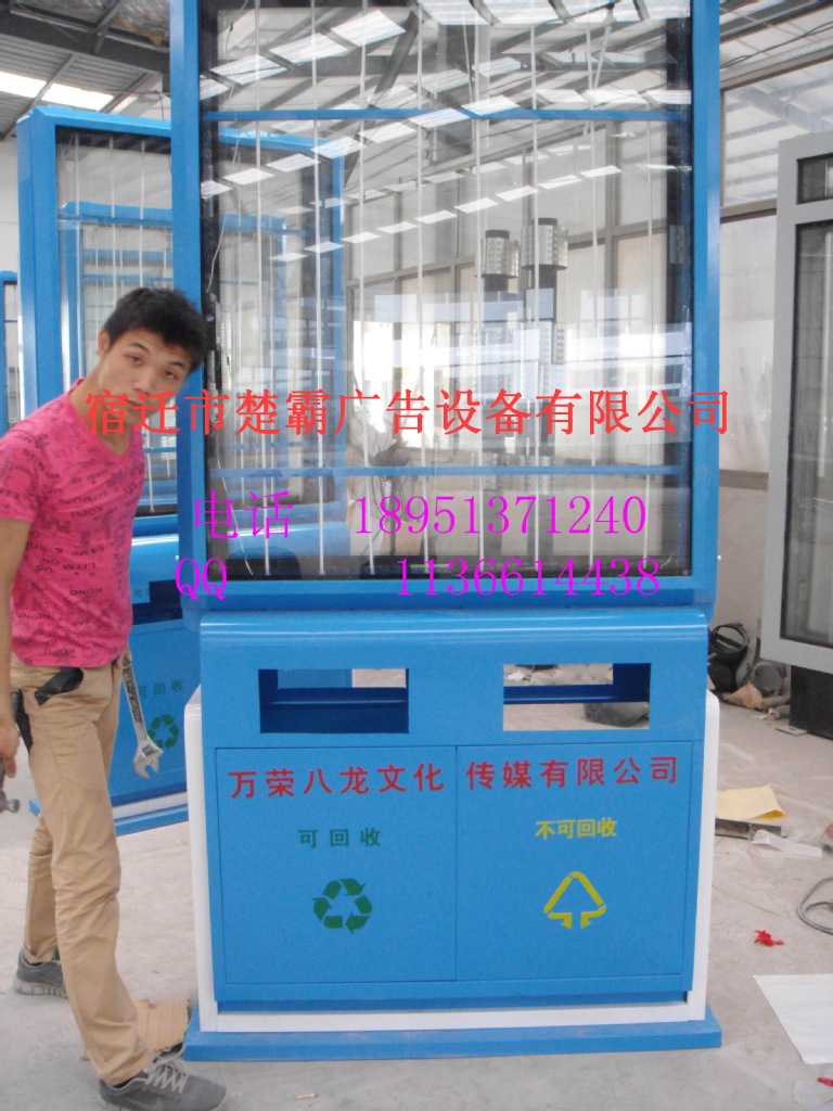 楚霸广告专业从事于公共环卫设施的设计研发、生产销售。环卫产品有户外广告灯箱、不锈钢广告垃圾箱、滚动广告垃圾箱、LED广告垃圾箱、镀锌板喷塑广告垃圾箱、分类广告垃圾箱、环保垃圾箱等环卫配套公共设施;本公司的宗旨是“科学理念,以人为本;以质量求生存、以管理求效益”!本公司已通过ISO9001:2000质量管理体系认证.是宿迁市环卫协会会员单位,全国质量稳定合格产品,全国用户评定满意十佳品牌.欢迎社会各界朋友光临惠顾和来电咨询,为了我们美好的家园,携手共进、共创未来!