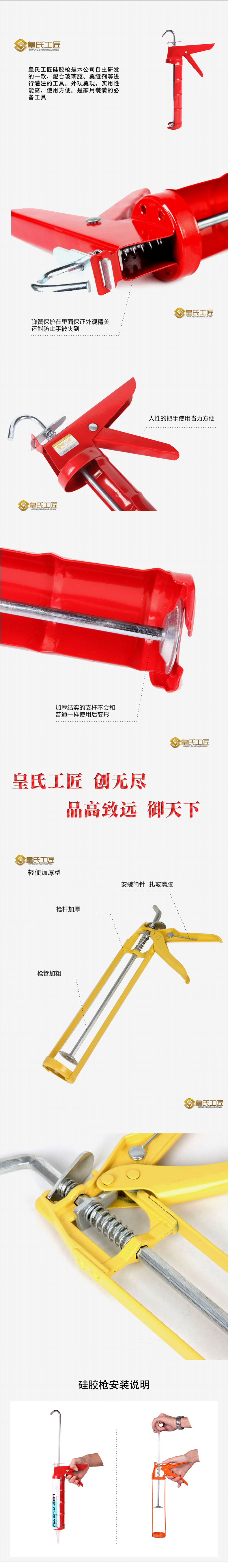 皇氏工匠普通型玻璃胶枪 硅胶枪 压胶枪 打胶枪 玻璃胶配套硅胶枪