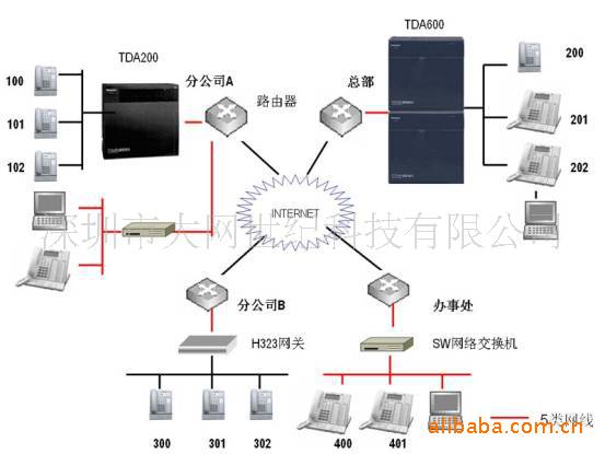 在两个或两个以上不同地点有分支机构的公司,可以通过本系统在各分支机构间建立专用的通讯网络,在各个节点之间的通话费用是免费的,而且可以对各分支机构的工作人员进行远程监控。每个节点的工作人员互相联系好像公司里的内线一样方便。