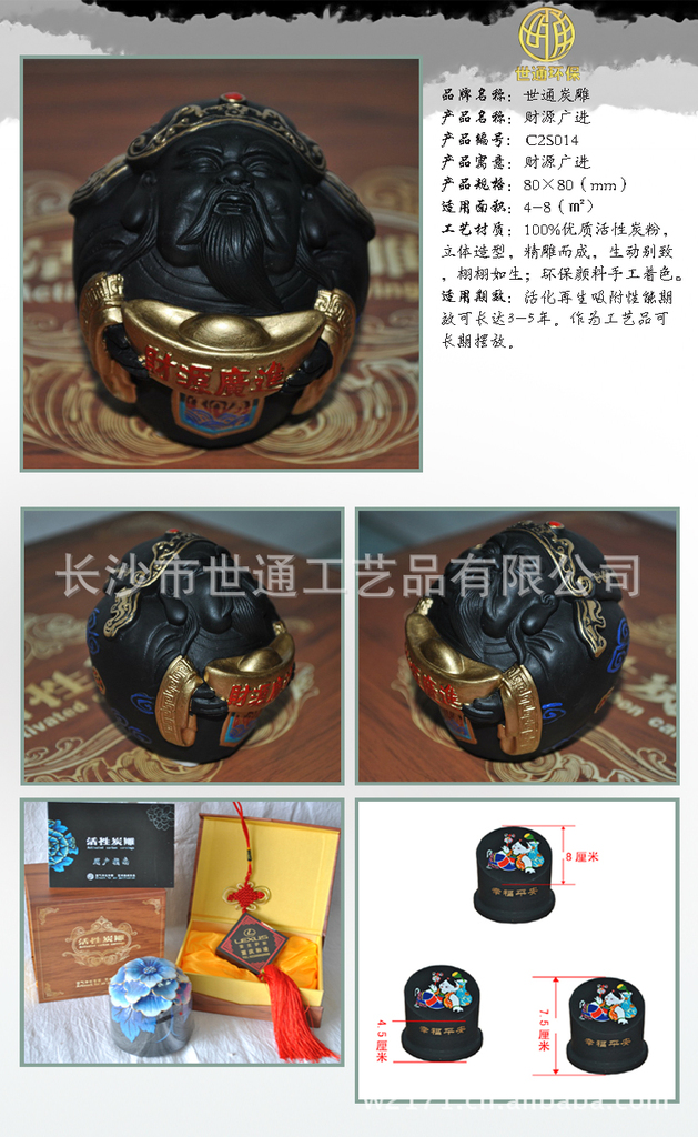 1.我公司炭雕均采用活性炭粉为原材料制成的,我公司炭雕经过湖南省疾病预防控制中心检测,检测表明具有有效吸附效果。所以你不用担心我们的炭雕的使用效果。您既然选择了炭雕,看中的是炭雕的功效。所以这一点是绝对不能马虎的。